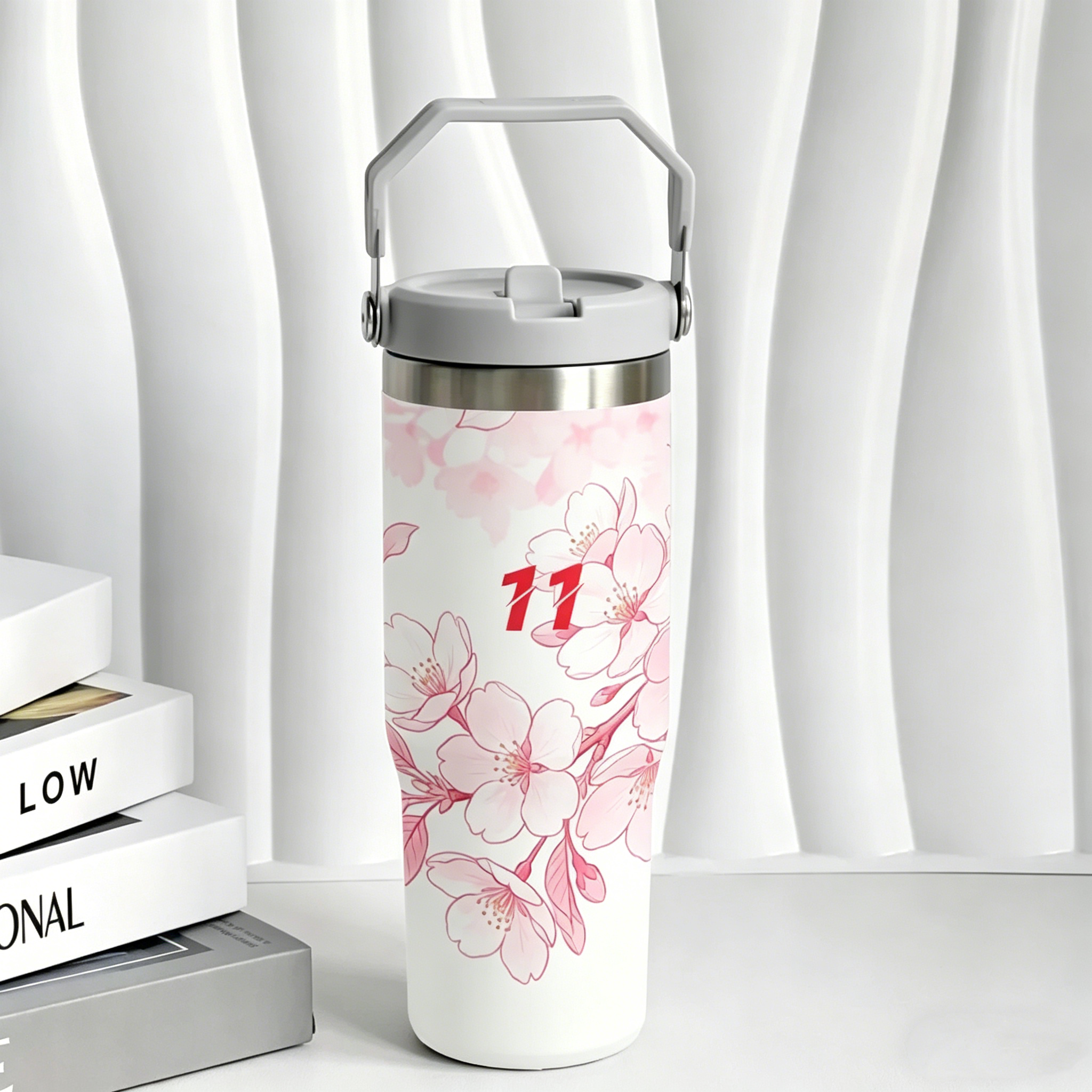 Luxury Stunning Hand-Drawn Cherry Blossom Floral Print Insulated Tumbler with Straw & Ergonomic Carry Handle, 30oz Large Capacity Double-Walled Vacuum Insulated Stainless Steel Water Bottle, Elegant Reusable Travel Coffee Mug with Leak-Proof Flip Lid, Stylish 11 Graphic Thermal Flask, BPA-Free Sweat-Proof, Keeps Beverages Hot & Cold for Hours, Premium Eco-Friendly Insulated Cup for Outdoor, Office, Travel, Gym, Home, Perfect Gift for Women & Girls |